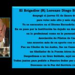 En nombre de la Asociación Pilotos de Caza deseo hacerles llegar a la familia, nuestras sentidas condolencias por la partida del señor Brigadier (R) Lorenzo Diego Bravo Deheza a integrar el Escuadrón del Cielo, como solemos decir nosotros los aviadores. El fue nuestro Decano y primer presidente de la APC. Su Larga historia, como Piloto de Caza, tiene un hito principal cuando con el grado de Alf. en mayo de 1947 fuera designado para integrar la comisión que fue a...